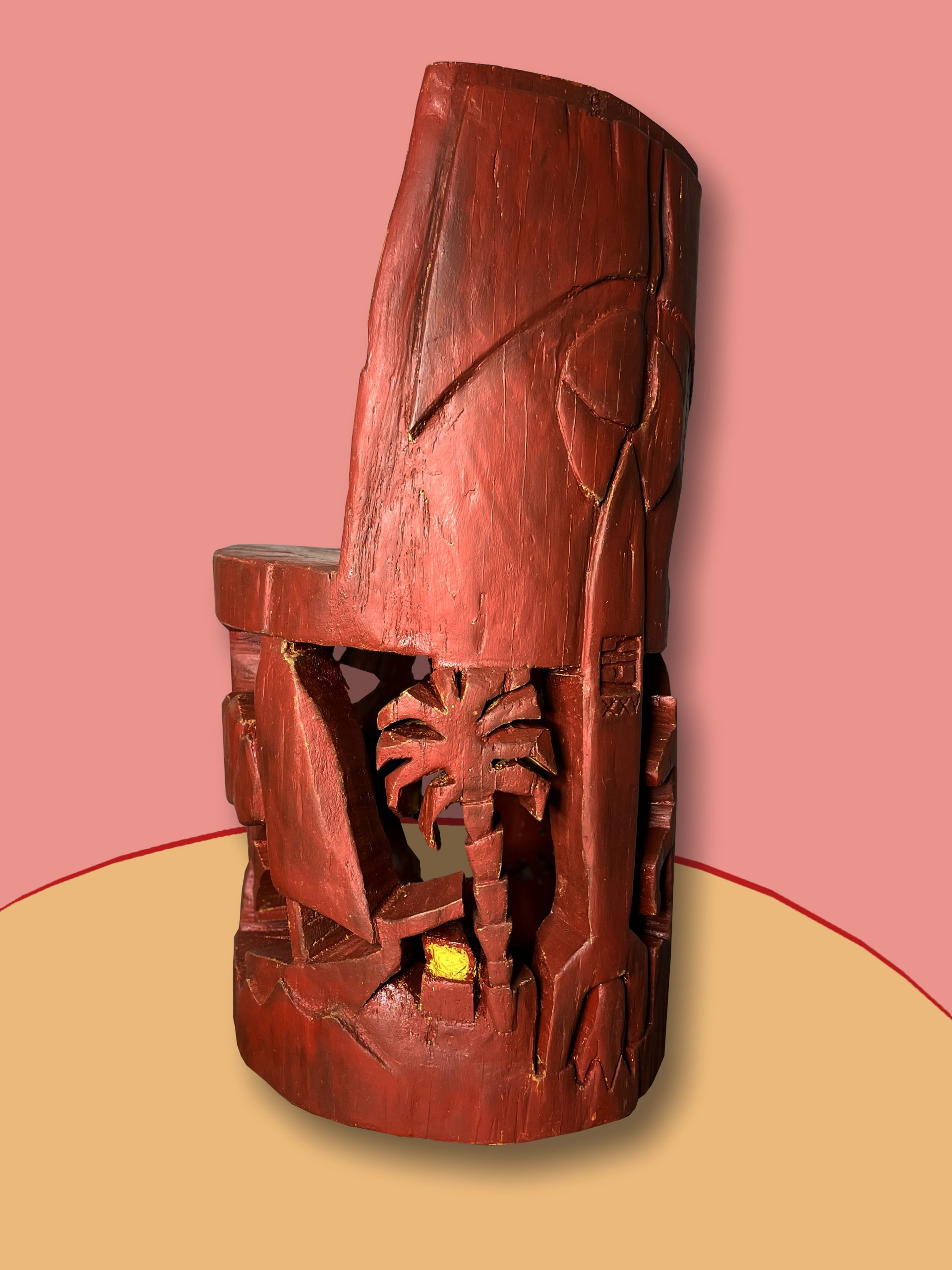 Ein Junge und ein Mädchen halten sich an der Hand und stützen die Sitzfläche. Zu ihren jeweiligen Seiten werden ihre Wesenszüge bebildert. Der sich durch einen Sturm zu einer Schatzinsel arbeitende Junge und das mit einer Kutsche unter einem Regenbogen ins Leben reitende Mädchen. Beide erreichen ein startbereites Raumschiff. Ihre Einladung, Grenzen zu überwinden und die Unendlichkeit der eigenen Möglichkeiten zu erkunden. Mond und Sonne des Nachthimmels repräsentieren gleichzeitig das Auge der Vorsehung. Der von vorne betrachtete Körper der Rakete wird zu einem Baumstamm, der sich zwischen den Kindern auf der Rückenlehne des Stuhls zu einer Baumkrone formt. Diese wird durch ein sich betrachtendes Paar gebildet. Eine Darstellung der Eltern? Oder sind es doch die zu Erwachsenen herangereiften Kinder? In jedem Fall ein aus einem Baum entstandener Baum – Symbol des ewigen Kreislaufes unseres Lebens.